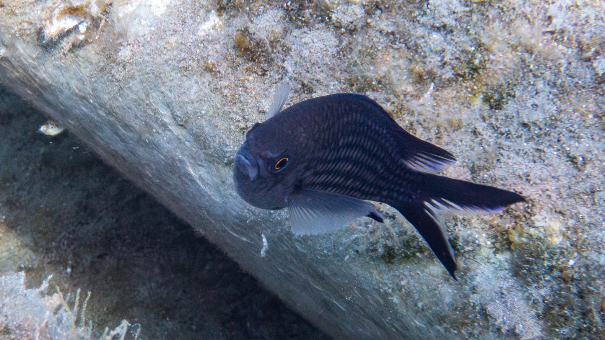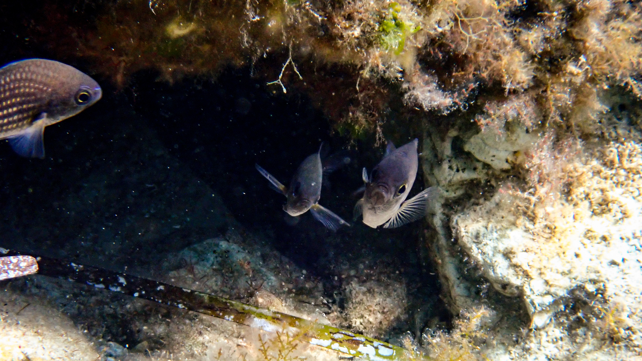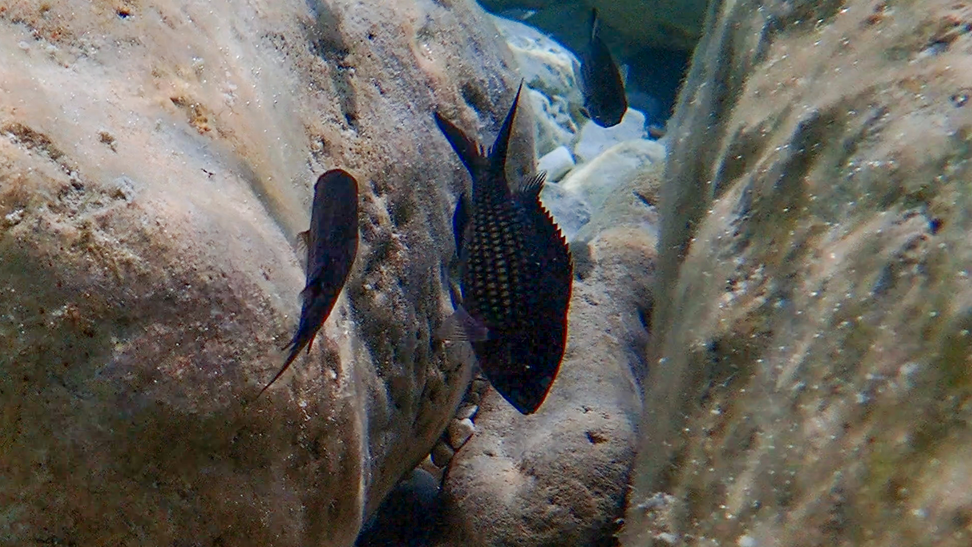 Diesen Mönchsfisch (Chromis chromis) beobachteten wir am 23. August 2024 an der Küste in der Nähe von Parga: https://www.inaturalist.org/observations/259513938