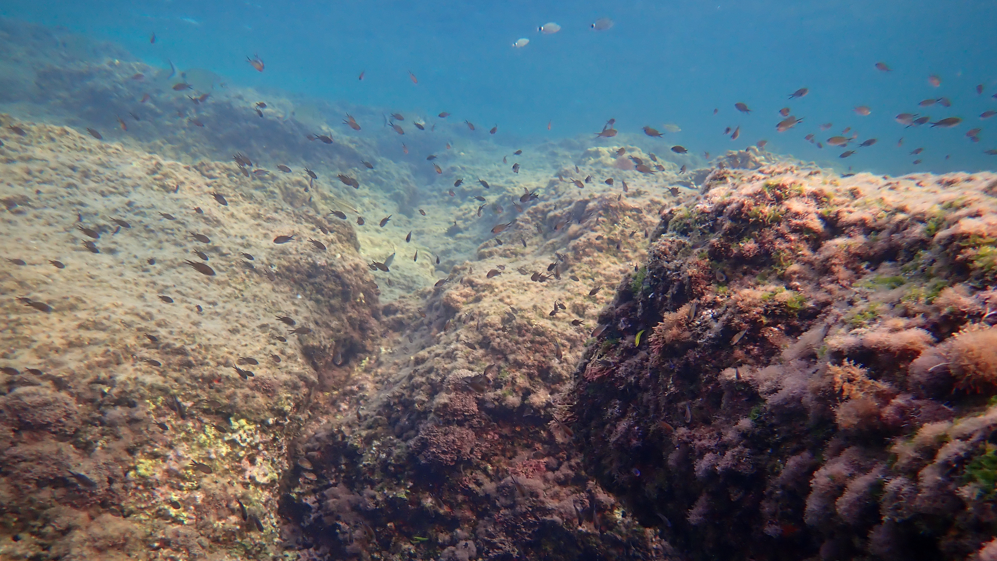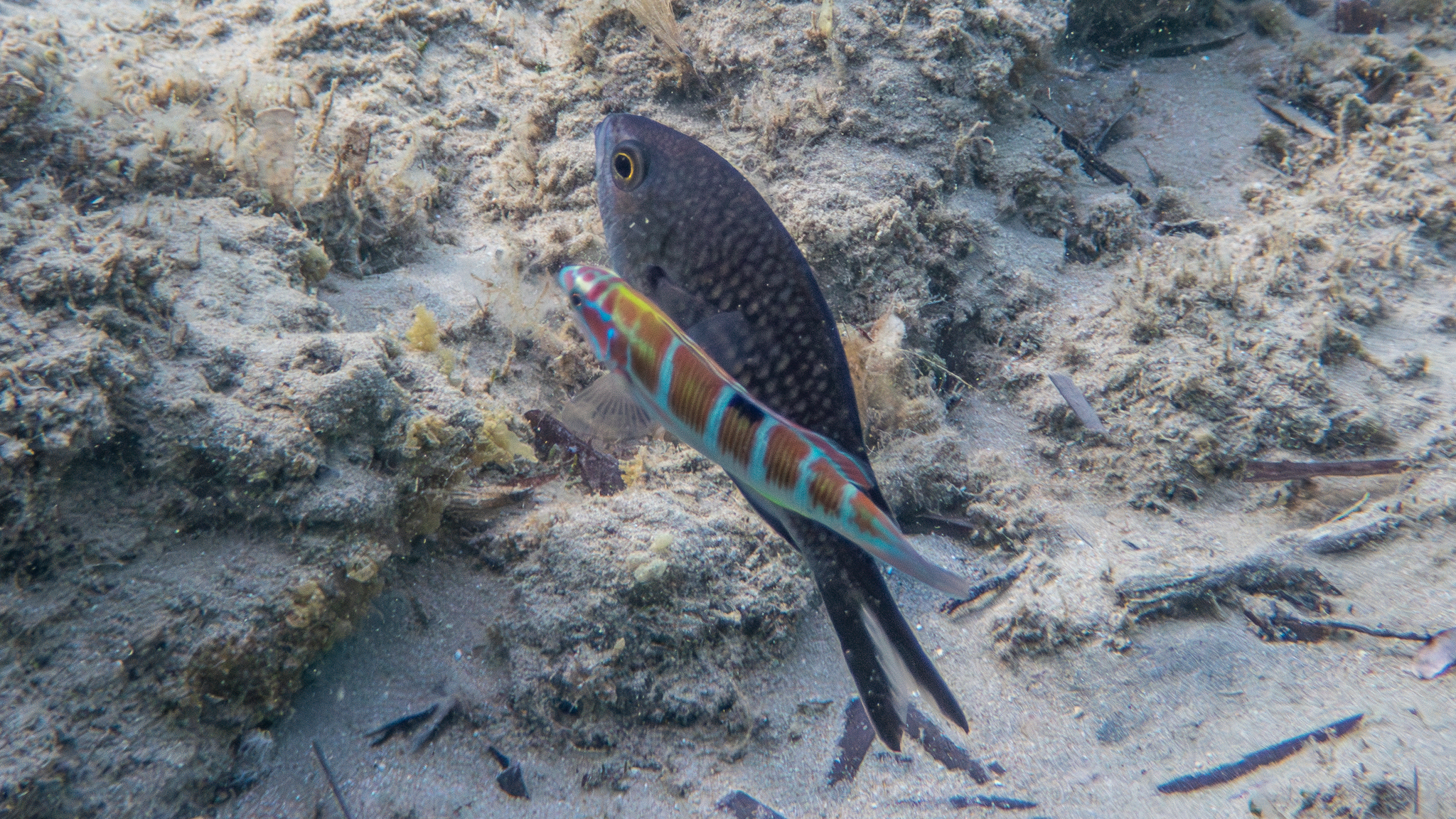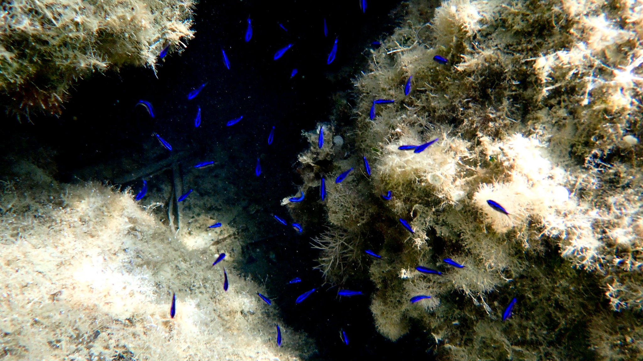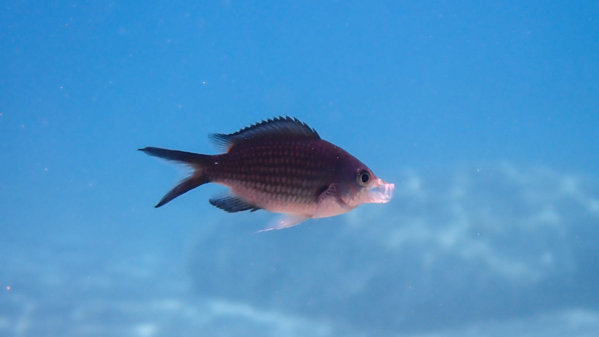 Diesen Mönchsfisch (Chromis chromis) beobachteten wir am 23. August 2024 an der Küste in der Nähe von Parga: https://www.inaturalist.org/observations/259513938