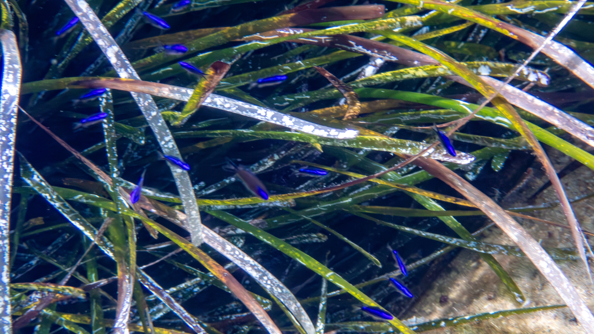Jungfische schwimmen häufig über Posidonia Seegras oder in der Nähe von Felsen, so dass sie sich schnell verstecken können.