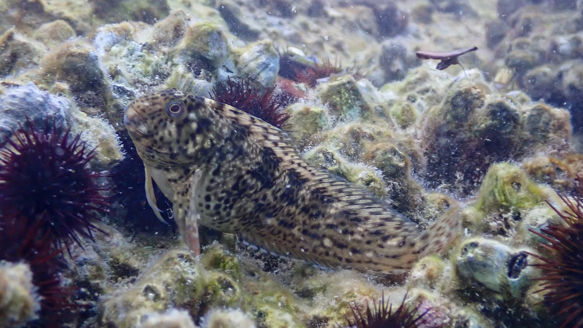 Diesen winzig kleinen perlmuttfarben schimmernden Sphinx-Schleimfisch haben wir am 7. Juli 2024 an der Süd-Ost-Ecke von Kefalonia in sehr flachem Wasser fotografiert: https://www.inaturalist.org/observations/253290684
